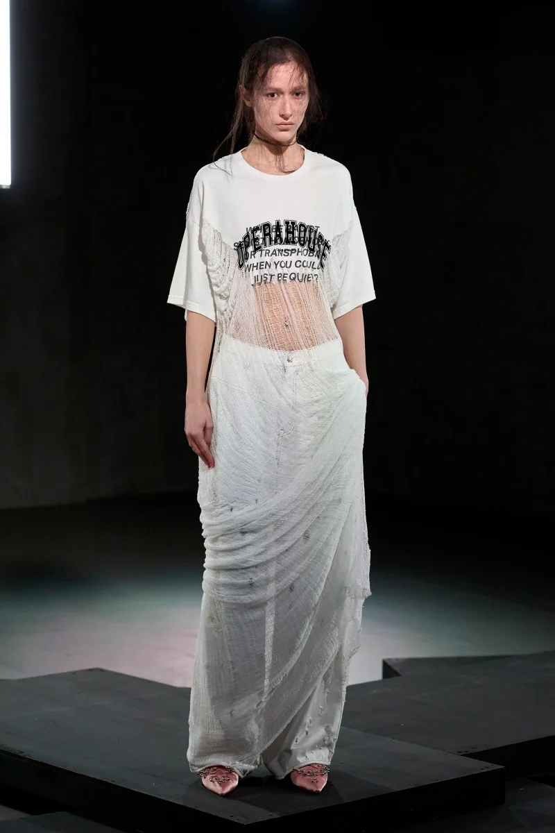 ファッションデザインマネジメントコース2024年度卒業生の林ひかりさんが、Rakuten Fashion Week Tokyo 2026Spring/Summerにて、Chika KisadaとコラボレーションしたTシャツをほぐしたドレス・ストッキングなどのアイテムを制作・発表しました。