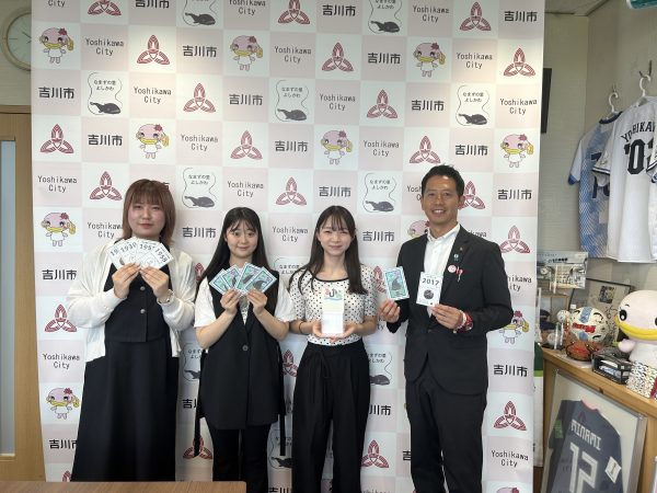 吉川市 中原恵⼈市長、(株)十八屋 ⽯井和也様、まつざわ煎餅 松澤鈴⼦様、ほかご協力いただきました皆様に心から感謝いたします。(環境デザイン学科教員 金子友美)