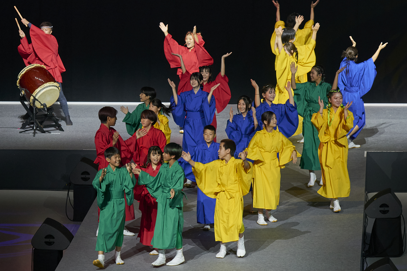 聴覚障害の方にも伝わるようにと重低音の効いた祭囃子の爆音に合わせ、東京体育館フロアの選手団と客席の観客が一体となって「ボンミライ!」を踊り、楽しく盛り上がった大会のフィナーレとなりました。